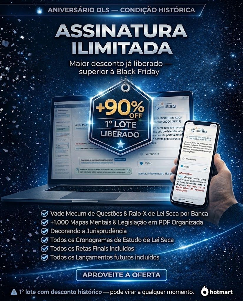 Entre agora na promoção de aniversário do Decorando a Lei Seca e garanta acesso vitalício com uma condição histórica, válida por tempo limitado.