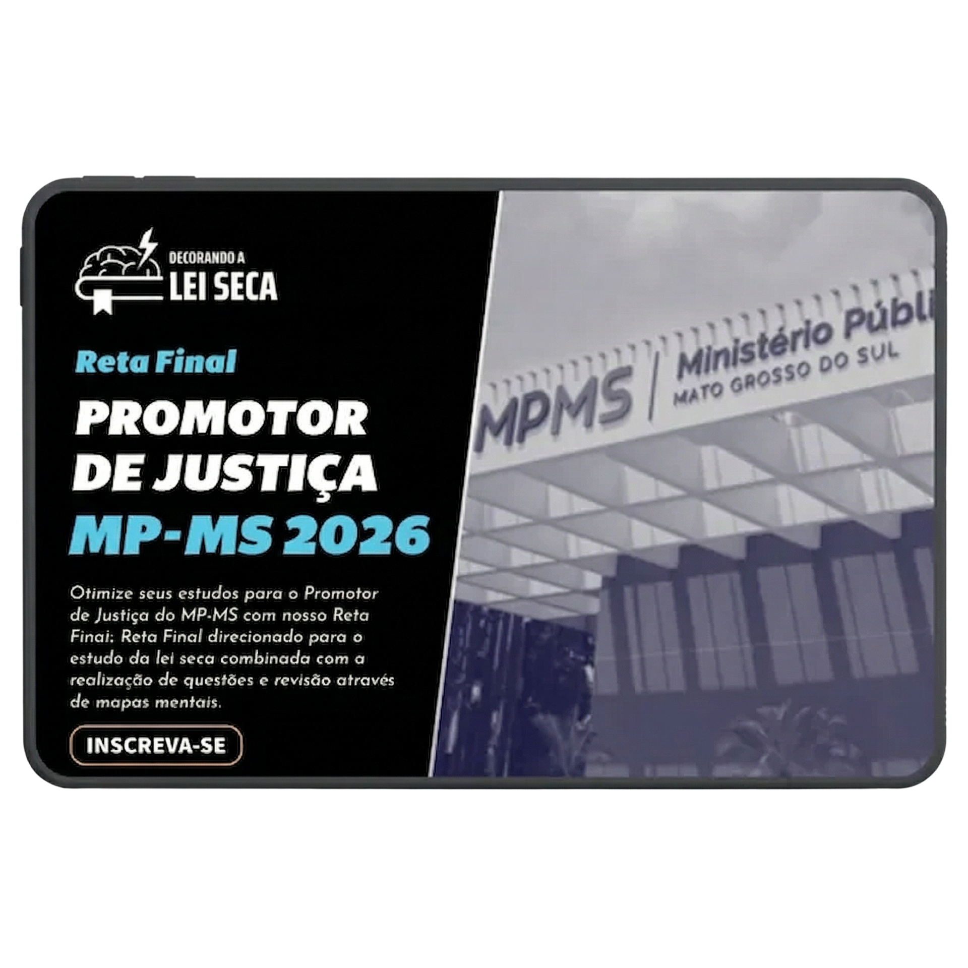 O Reta Final para Promotor de Justiça, do MP-MS, conta com um Cronograma de Estudo da Lei Seca, que busca abordar os principais diplomas legais exigidos no edital de 2026.